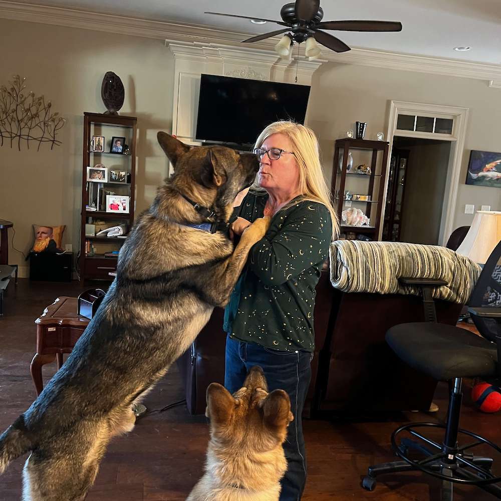 We are lifelong German Shepherd dog lovers living in Huntsville, AL. We are passionate about sharing our very well bred Giant German Shepherd dogs and preserving the working line qualities and all their desirable traits. Our dogs are from the working GSD line, they have great ball drive, love to “find” things, alert when appropriate and have a desire to please. Our two dogs live in our home with us and are family dogs with great love for children and elderly and keep a watchful eye for any threats. We are continuing the strong breeding program of Brinda Redwine, creator of the Facebook group Giant German Shepherds.