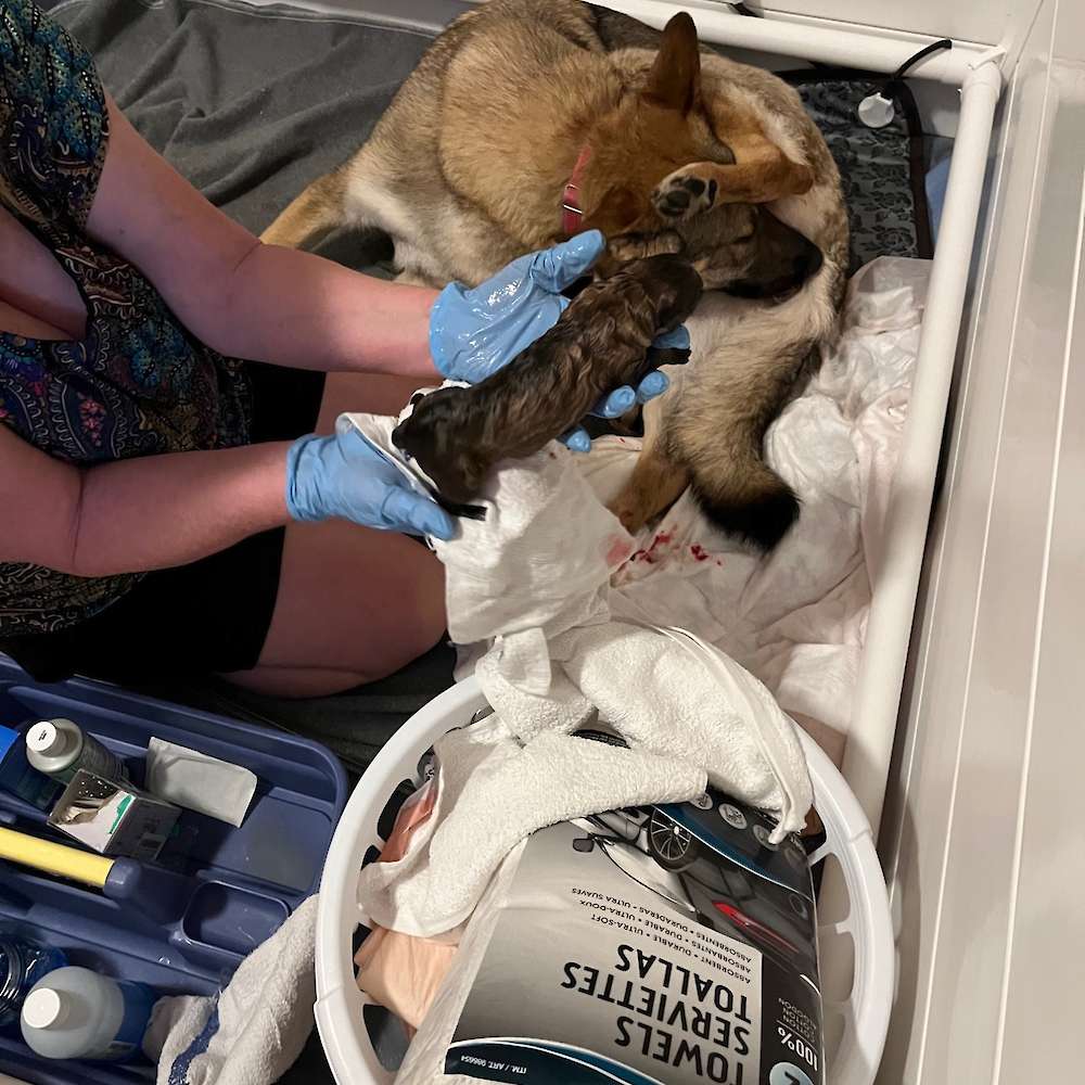 Amazing moments: 1) Nala’s first interaction with her new pup – she finally got to find out what all those body changes were about. 2) How quickly blind, newborn pups can find their mom and instinctively start nursing. 3) How blind pups smell and know when mom is in the area. One by one, they begin to stir, whine, and give little squeaks before finding her. 4) How quickly blind pups can make it across a 5’ whelping box when they know mom is near 5) At one week old, how much they have changed, grown, and are determined to eat their fill whenever mom is near. #6) Trust. This was Nala’s first litter and she trusted me completely to help her, help her pups and keep everyone safe at such a vulnerable time. She continues to allow us to handle the pups when we need to and she knows when she sacks out, her pups are safe and she can rest.